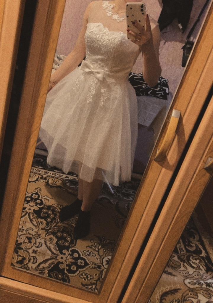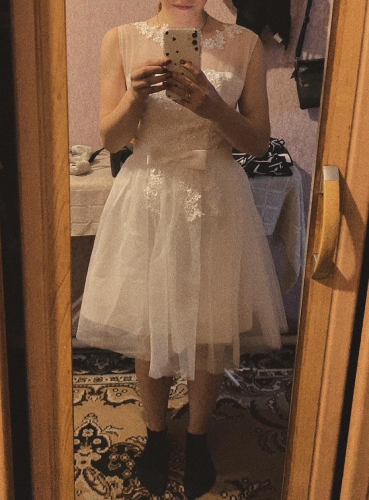 Das Kleid wurde recht schnell geliefert. Sehr schön, zart und sauber genäht. Knielang. Zu groß für ein 16-jähriges Mädchen.