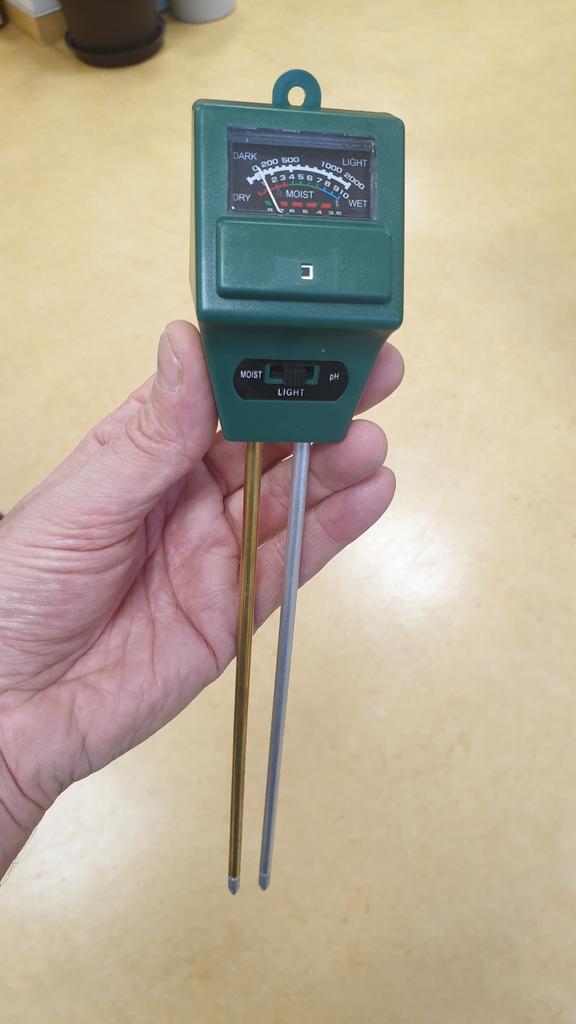 Legen Sie einfach das Messgerät in den Boden ein, wechseln Sie zu der Einstellung, die Sie messen möchten, und lesen Sie die Skala ab.
