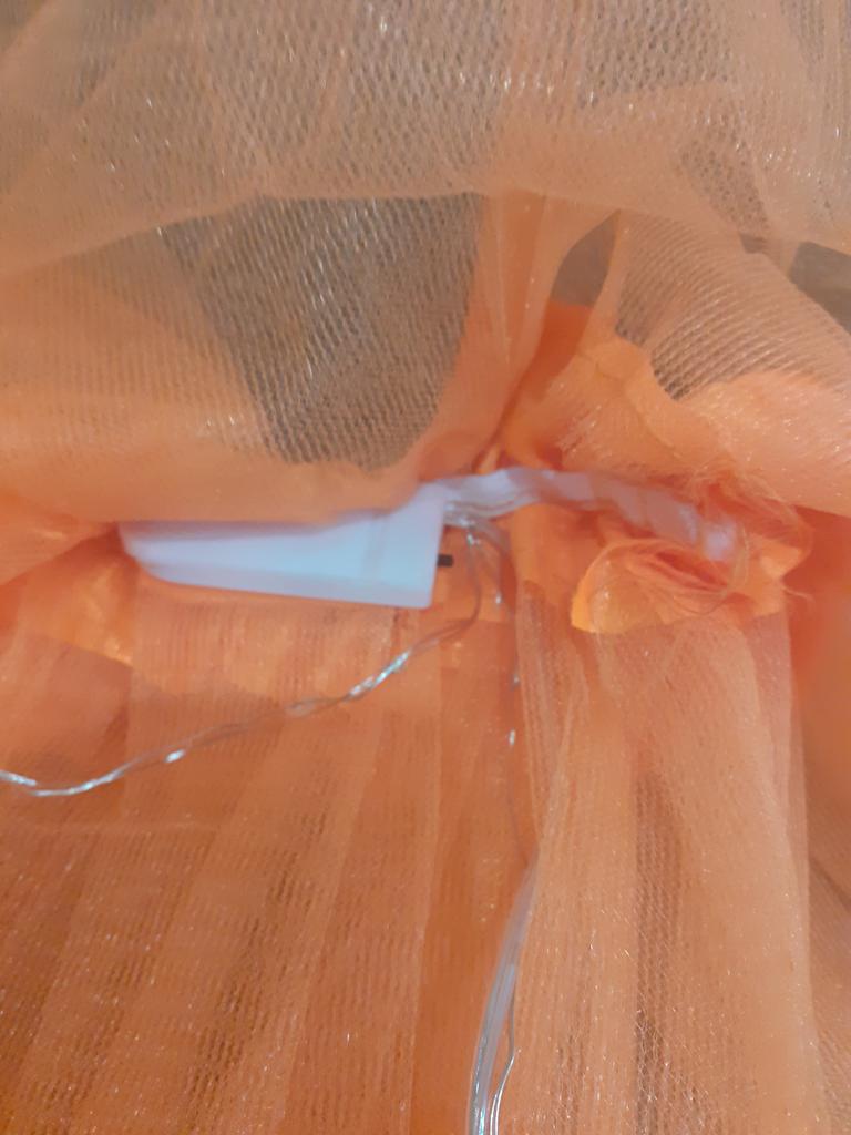 Sehr billig gearbeitet. Für das Geld echt zu schade. Die Lichterkette wurde einfach zwischen zwei lagen Tüll eingeklebt