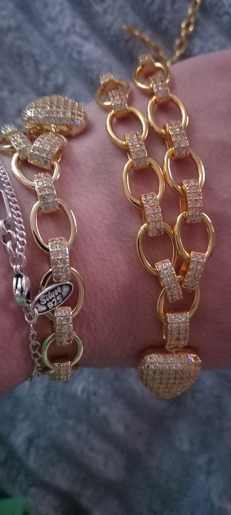 Die Qualität ist einwandfrei, aber die Farbe ist sehr seltsam...helles Gelb... Auf der rechten Seite (an der Hand) befindet sich eine Halskette, auf der linken Seite ein Armband der gleichen Serie. Das Armband hat einen helleren Farbton.