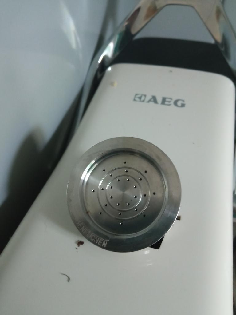 Noch nicht benutzt, aber es hat ein kleines Loch, durch das der Kaffee herauskommen muss