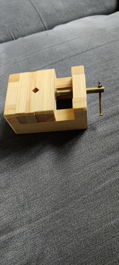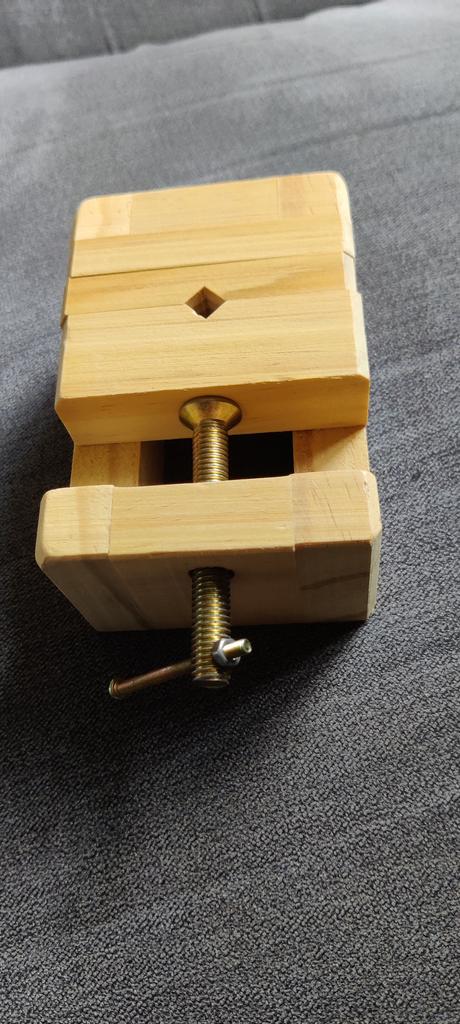 Ich bin so zufrieden mit meinem Schraubstock aus schönem Holz, deshalb habe ich ihn wegen der Ungewöhnlichkeit gekauft. Er ist klein, was gut ist, und die Blöcke können je nach Bedarf des Herstellers verschoben werden. Ein toller kleiner Artikel, vielen Dank.