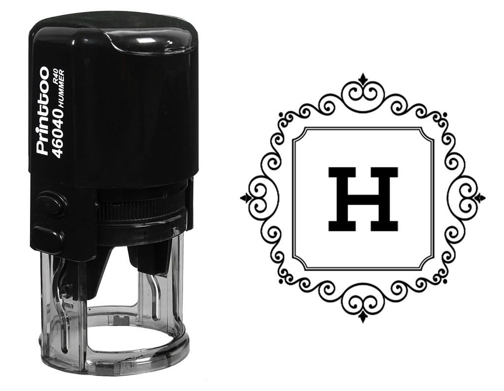 Printtoo Self Inking Square Swirl Border H Alphabet Monogram Initial Round Rubber Stamp Office