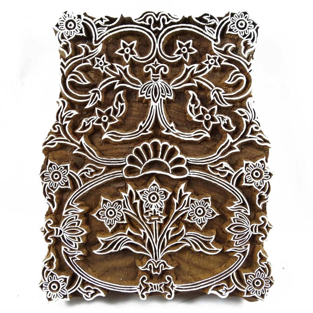 IBA Indianbeautifulart Textildruck, handgeschnitzter Blumenmuster-Holzblock auf Sari-Stoffstempel