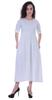 * Eigenschaften: Bequemes, gerade geschnittenes, wadenlanges Kleid mit geraffter Taille, detailliert ausgeschnittenen Ärmeln und Rundhalsausschnitt.