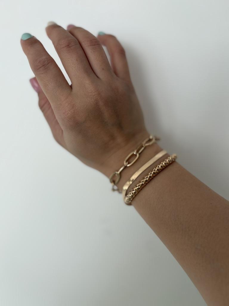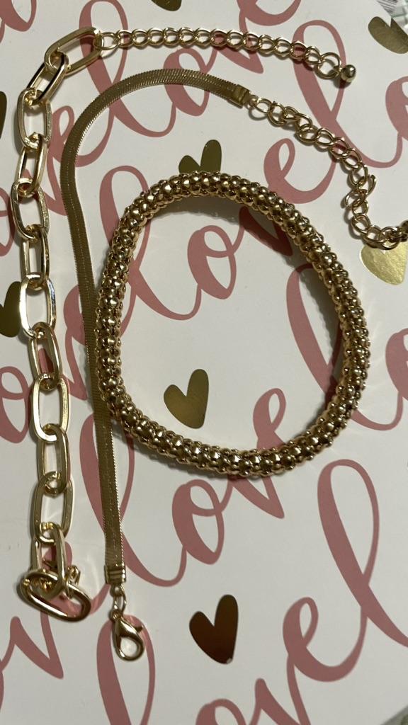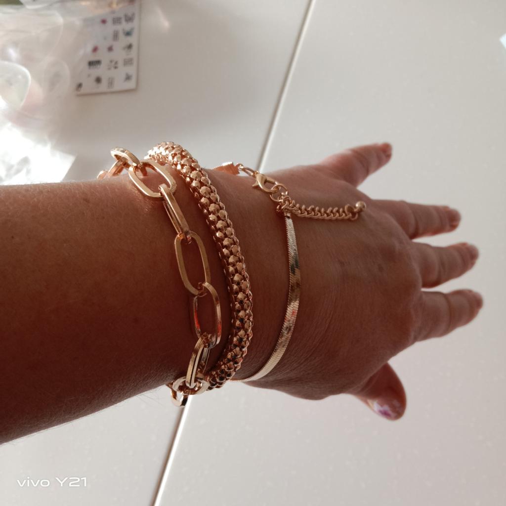 Das Armband besteht aus drei Armbändern, eines davon ist geknickt, aber ansonsten ist es hübsch, gefällt mir.