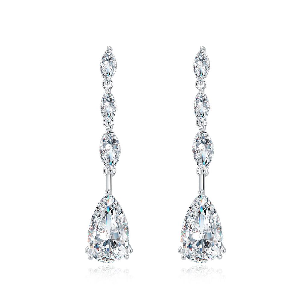 Gica Gema Tropfenohrringe mit hohem Kohlenstoffgehalt, 925er-Sterlingsilber, 47 x 10 mm, weißer Edelstein, romantischer edler Schmuck, Hochzeit, Party, Geschenke, neuer Trend