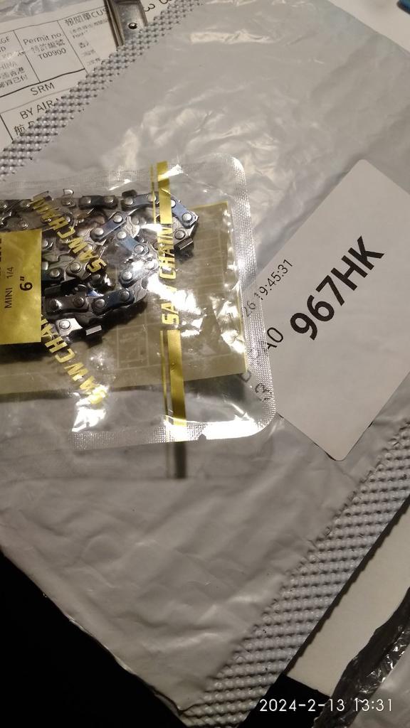 Die Kette kam geschmiert an und sah normal aus. Ich ließ es im Leerlauf laufen. Zu sehen gibt es noch nichts.
