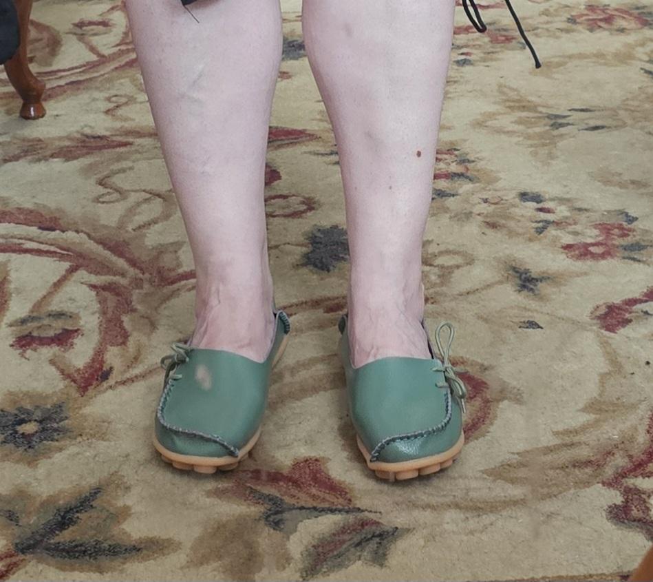Leicht und bequem. Aber das ist kein Kritikpunkt an den Füßen, die Beine schwellen genau an, ich bestelle nicht das erste Paar dieser Art, ich bin zufrieden, bis auf die Schuhe in Schwarz (die Absätze habe ich lackiert)