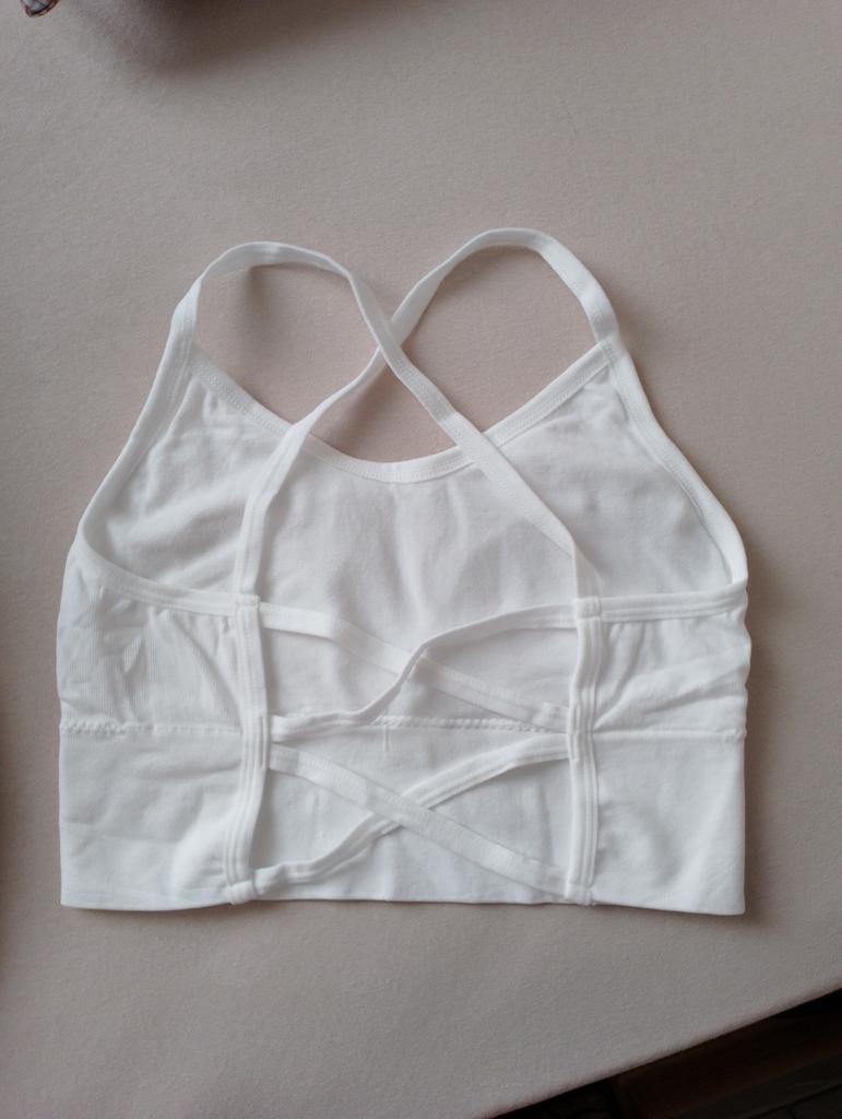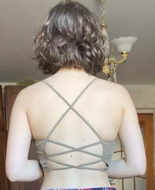 Zu durchsichtig. Der Nippel-Schutz, der in diesem Oberteil eingenäht ist, ist ziemlich unschön und sehr sichtbar, also musste ich ihn austauschen. Kann man aber nicht ohne tragen. Rücken ist hübsch