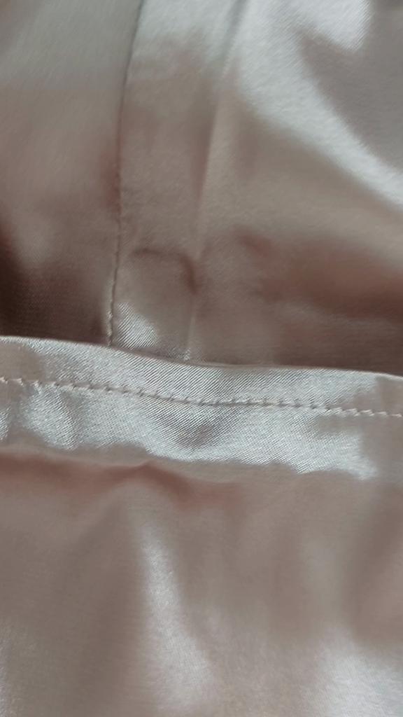 Der Stoff ist weich und dünn, und die Farbe hat nicht den richtigen Farbton. Ich dachte, es wäre Schokolade, aber der Farbton ist milchig und hat einen leichten Rosastich. Brauche einen Unterrock
