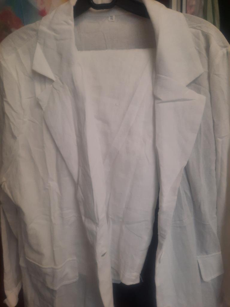 Der Anzug ist cool, aber für mich, 50 - Größe XXXL ist zu groß. Außerdem würde ich es SEHR gerne mit einer Bluse kombinieren, wie sie die Models auf den Fotos trugen.