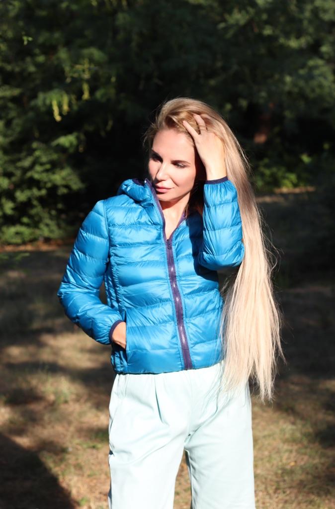 Die Jacke ist leicht, angenehm und schön, laut Präsentationsbild, helle und schöne Farben, aber die Maße entsprechen nicht den Angaben in der Tabelle, man braucht mindestens 1-2 Nummern größer, die Ärmel sind besonders kurz. Die Lieferung erfolgte pünktlich, gut verpackt. Es kommt mit einer Aufbewahrungstasche und ich habe auch ein schönes Haargummi geschenkt bekommen, wofür ich mich beim Verkäufer bedanke. Ich empfehle, aber Vorsicht, mindestens 2 Nummern größer zu nehmen, als man normalerweise trägt!!!