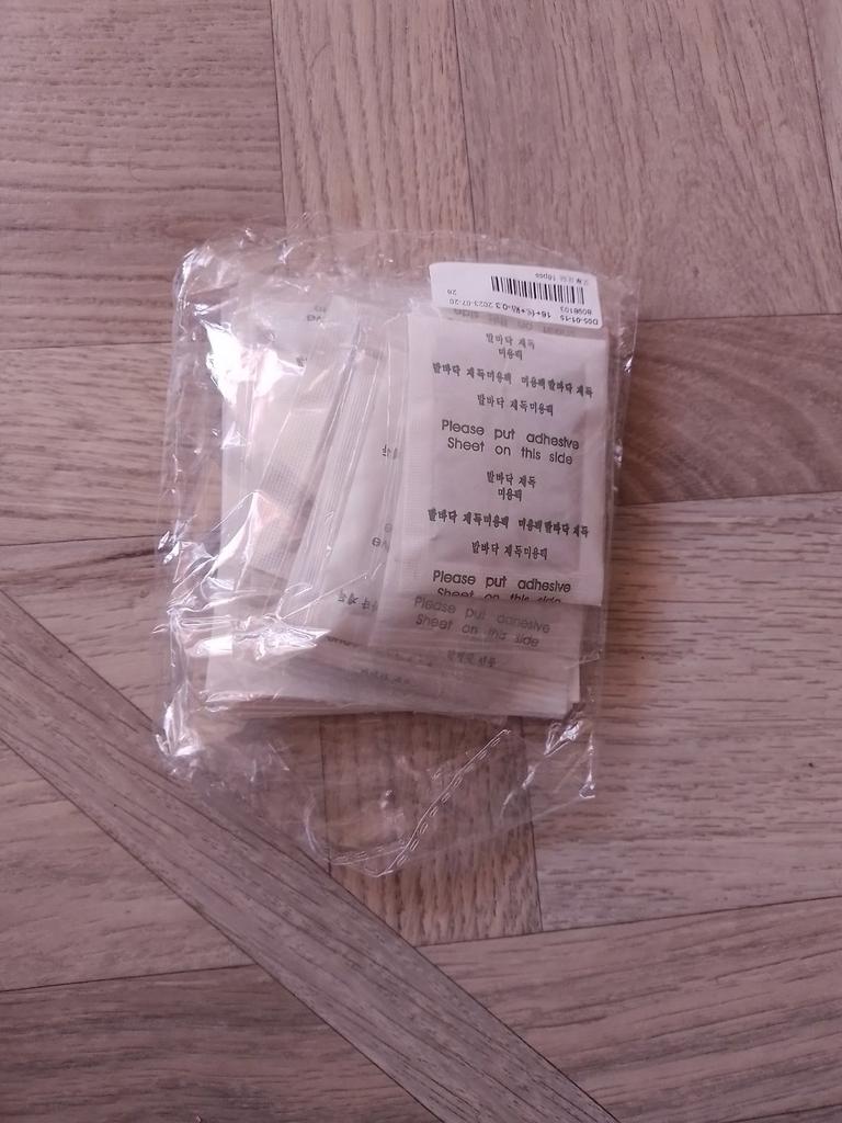 Legen Sie das Fußpolster auf den Klebstoff, wo sie mit Klebefolie auf dieser Seite vermerkt ist, und legen Sie sie auf die Fußsohlen oder den gewünschten Bereich eines anderen Körperteils.