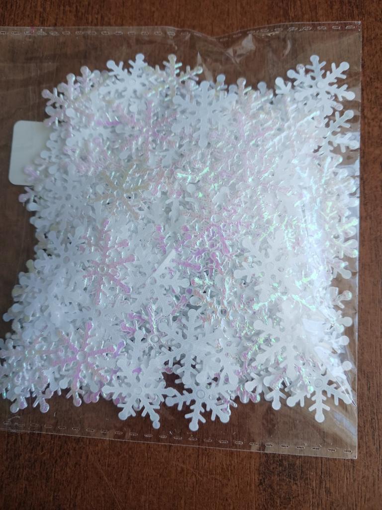 Glänzende Schneeflocken, ich habe nicht gezählt. Geeignet für Kreativität. Ich bin mit dem Produkt zufrieden, vielen Dank an den Verkäufer und Jum!)