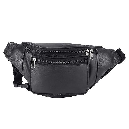 Noora Stilvolle schwarze Leder-Hüfttasche, elegante Reisetasche, Reisepasshülle mit verstellbarem Riemen