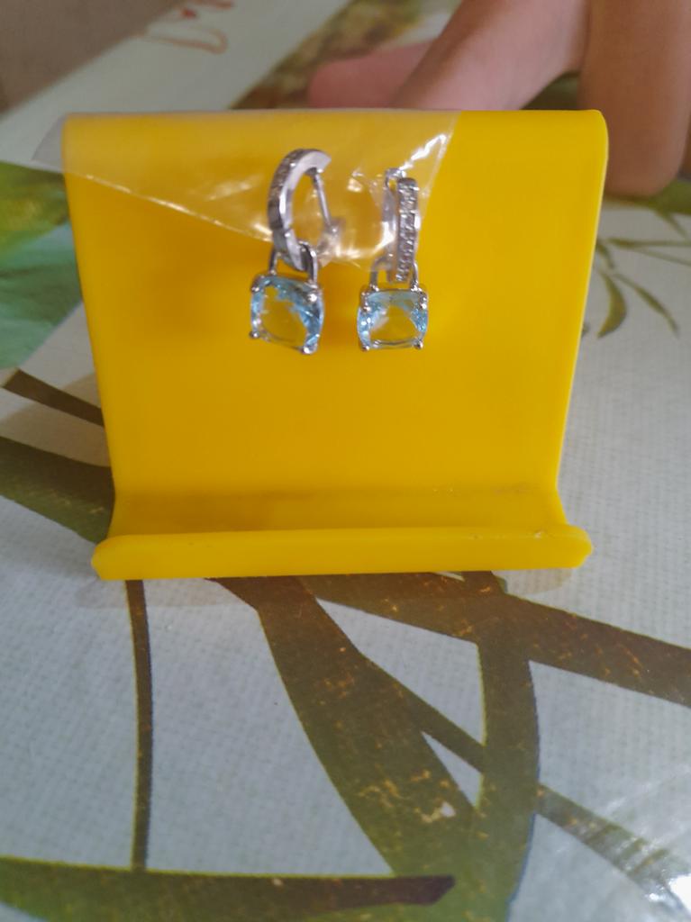 Neue Ankunft Baumeln Ohrringe Frauen Kissen Cut Aqua Blau Stein Anhänger Creolen Stilvolle Mädchen Tropfen Ohrringe Statement Schmuck
