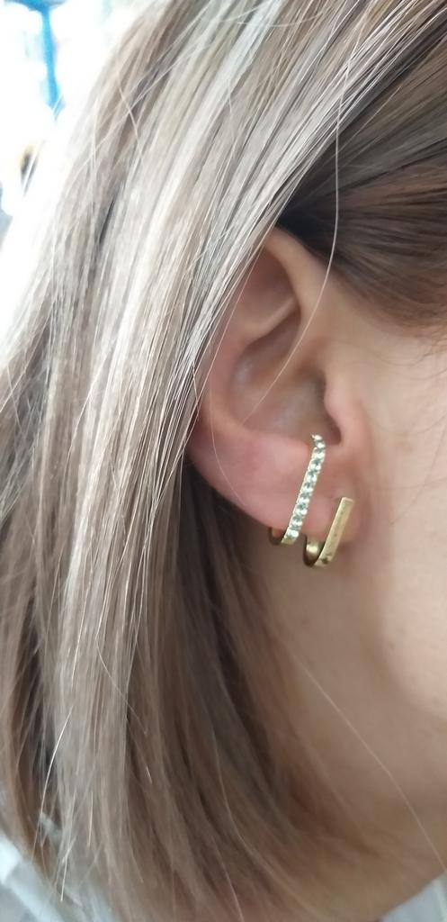 Passt nicht zu jeder Ohrform. Sieht auf kleinen Ohren schlecht aus. Metall von schlechter Qualität, blasse Zitronenfarbe. Sieht nicht aus wie Gold.