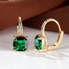 Silberfarbene, roségoldfarbene Tropfen-Creolen mit geometrischem Smaragdschliff, grünem Stein, Hochzeits-Ohrhänger für Frauen