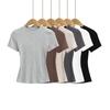 Vintage Holzohren O Hals Kurzarm T-ShirtNeues Damen Slim Fit T-Shirt enges T-Shirt Sommer Retro Tops