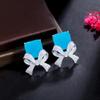 CMM Einzigartige Ohrstecker mit winzigen Zirkonia in Rosa, Blau und Grün, geometrische Schleife