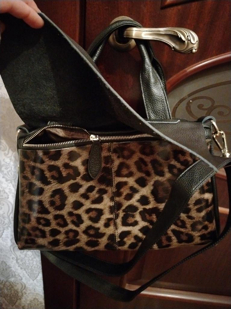 Die Tasche ist nicht schlecht, die glänzenden Metallteile habe ich sofort entfernt, so sieht sie besser aus. Sie riecht nach echtem Leder und Farbe, ich habe zwei 2-Liter-Flaschen Wasser und Papier hineingelegt, damit sie sich aushängt und die gewünschte Form annimmt. Ich warte!