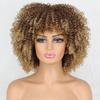 MISS WIG Kurze, lockige, synthetische, hitzebeständige Faser-Perücke, Schwarzbraun, mit Pony, Afro-Farbverlauf, Cosplay-Perücken