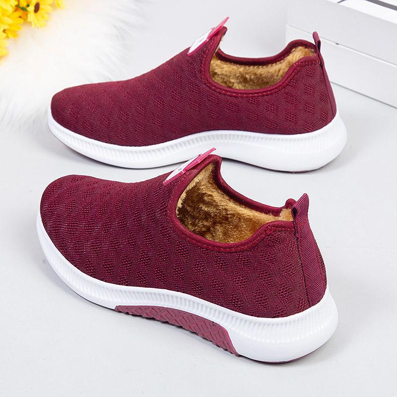 Plus samtverdickte Damen-Sneakers, flache Sohle, warme, lässige Sneakers, Heimschuhe