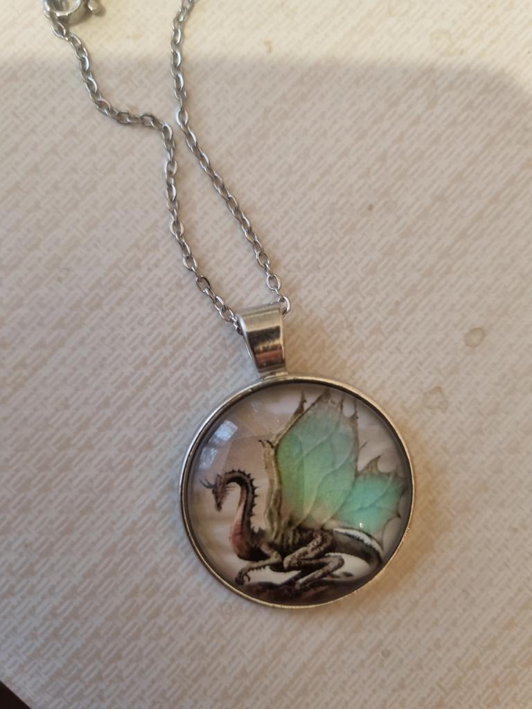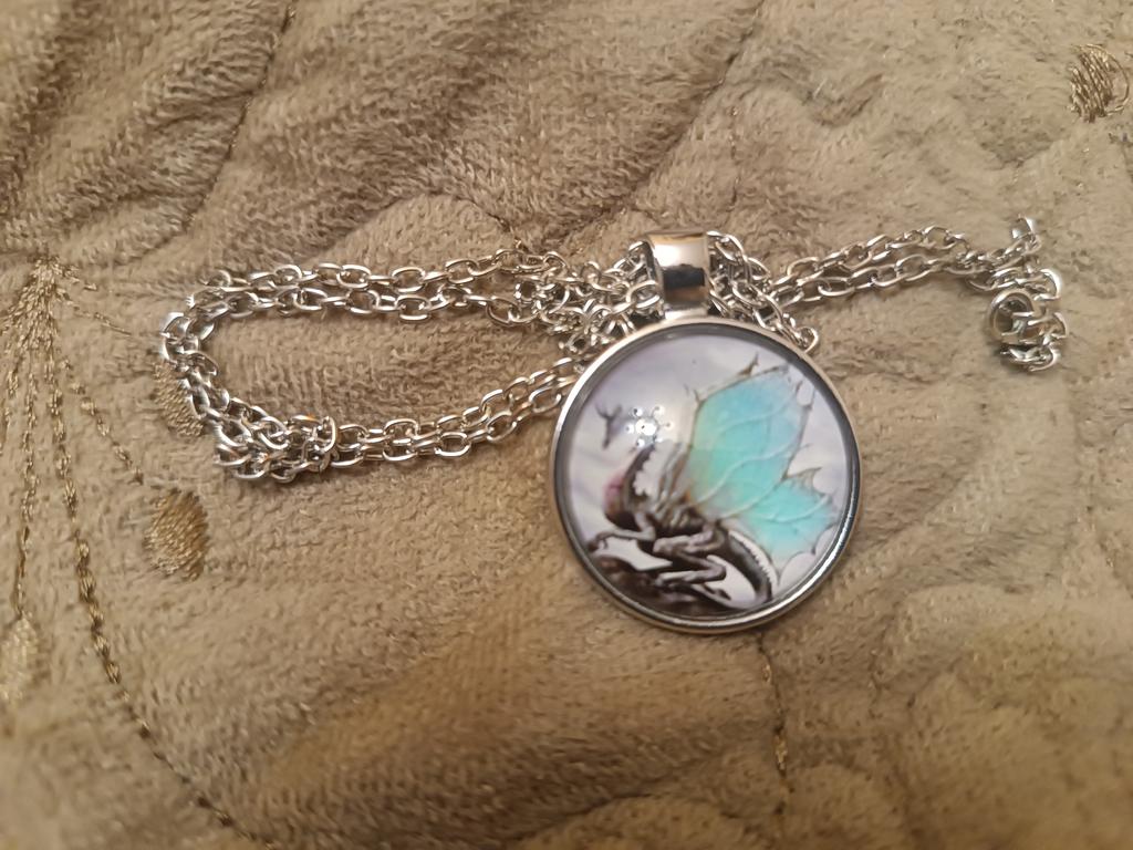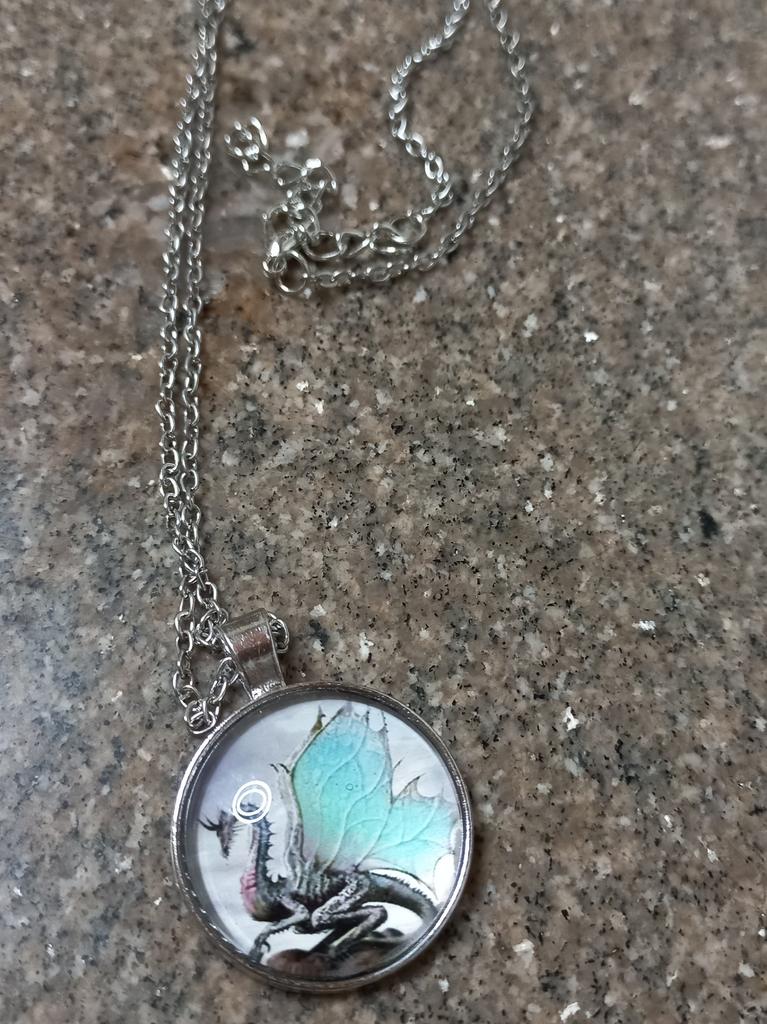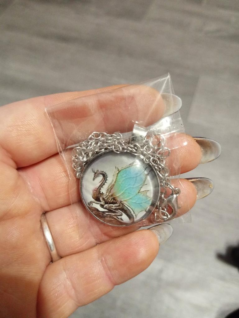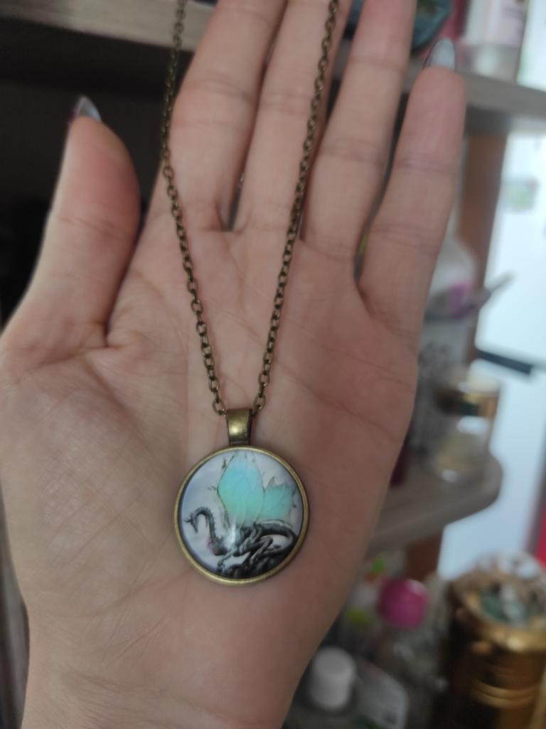 Der Drache befindet sich nicht in der Mitte des Schmuckstücks, weshalb er im Kreis geschnitten ist. Ein Teil der Flügel und ein Teil des Körpers fehlen. Dies ist nicht konform . Es hat nichts mit dem in der Beschreibung gezeigten Bild zu tun.