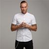 Muscleguys Modisches Kurzarmhemd für Herren, lässiger Stehkragen, schlichtes Design und Retro-Stil