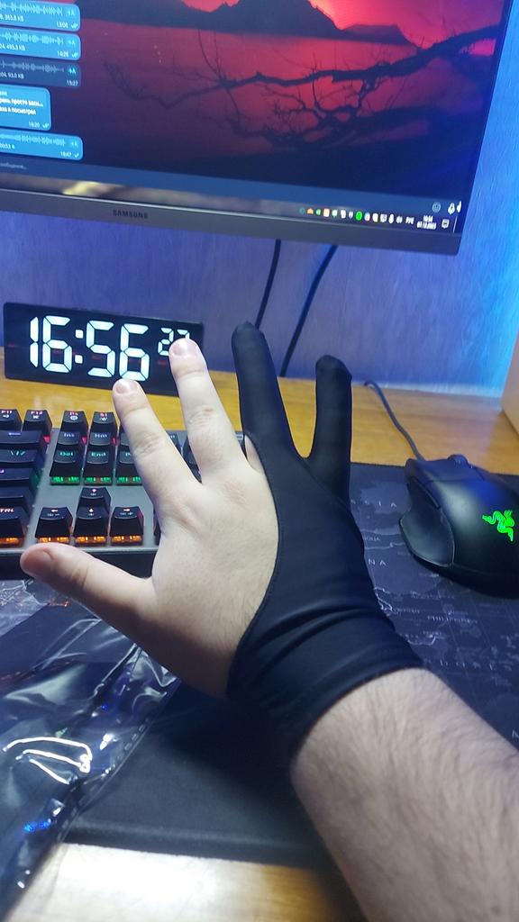 Mein Tablet-Bildschirm erkennt meine Hand auch mit dem Zeichenhandschuh noch.