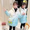 Gepolsterte Baumwollkleidung für Mädchen erhalten Taschen kostenlos. Dicke Winterkleidung, glänzender Mädchenmantel