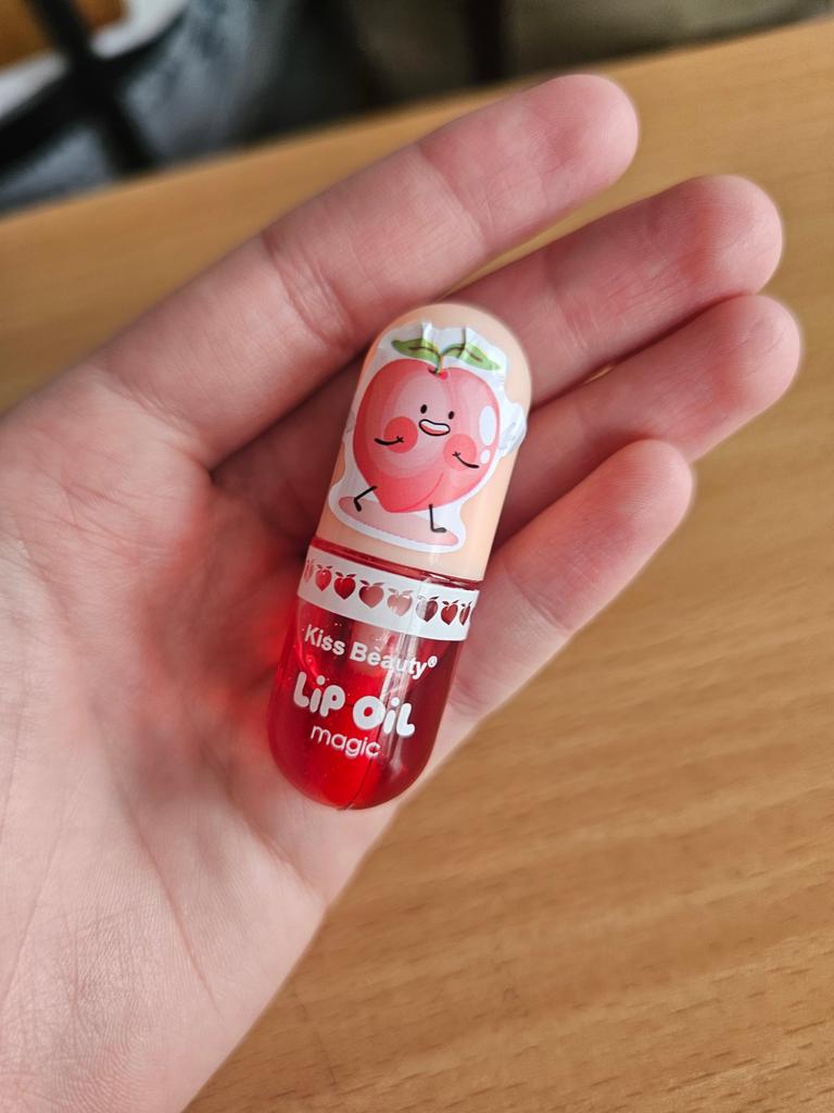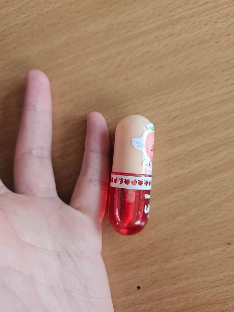 Klein, mit einem pfirsichartigen Geruch und die Lippen werden sofort nach dem Auftragen blassrosa