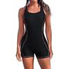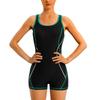 Anfilia Einteiliger Damen-Sport-Badeanzug, rückenfrei, Boxer, konservativer Badeanzug, Patchwork, Strandkleidung, Badeanzug