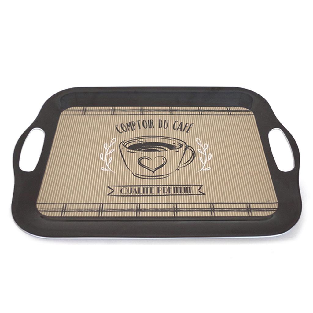 Les Trésors De Lily [A0229] – Großes Melamintablett „Comptoir du Café“ schwarz taupe – 41x28 cm