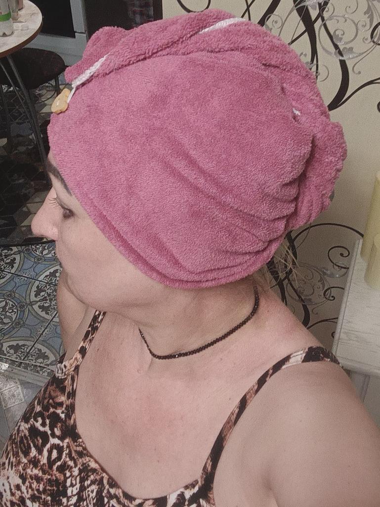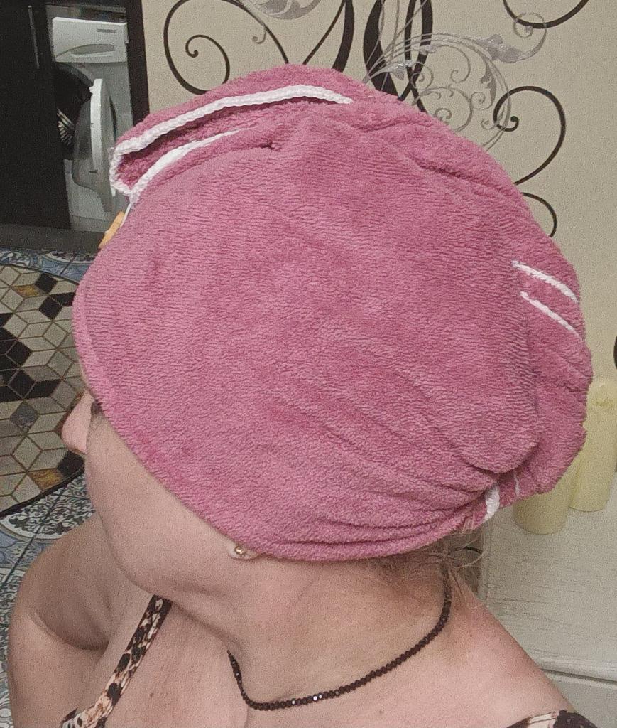 Schönes, weiches Handtuch. Für langes Haar wie meines (bis zu meinem Arsch😆) ist die Anwendung nicht sehr praktisch, aber im Großen und Ganzen ist es gut. Sauber genäht, Fäden stehen nicht ab. Das Paket reiste 18 Tage in die Ukraine.