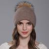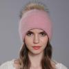 Frauen Winter Angora Kaninchen Haar Stricken Gebraten Teig Twist Doppel Schicht Bördeln Waschbären Pelz Ball Wolle Hut