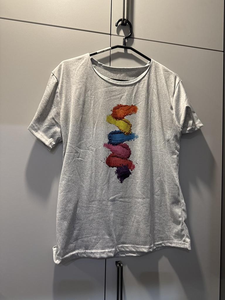 Das T-Shirt ist nicht schlecht, aber der Aufdruck sieht aus wie bunte Kacke, schrecklich....