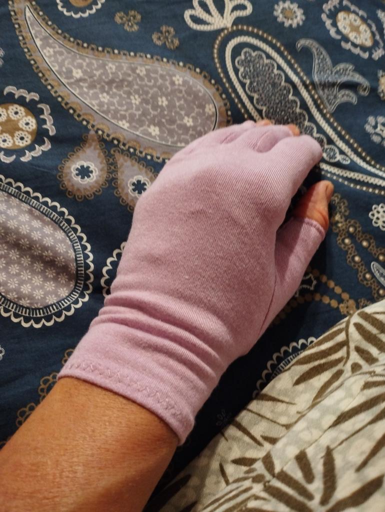 Ich mag sie, ich trage sie nachts, damit meine Hände ruhen können.