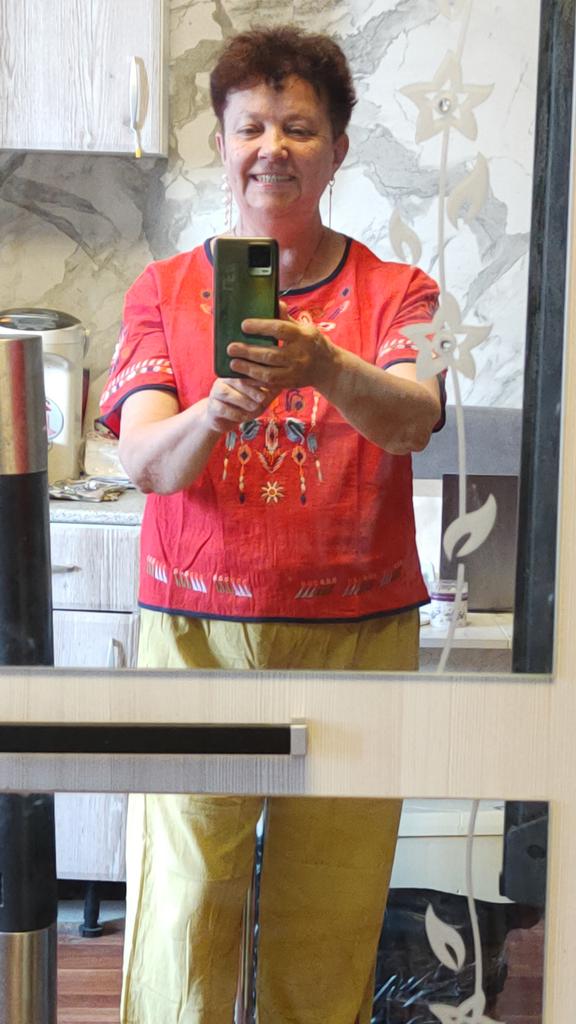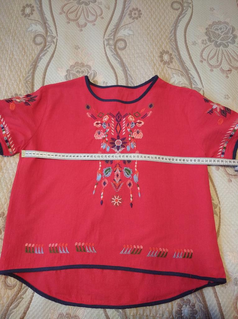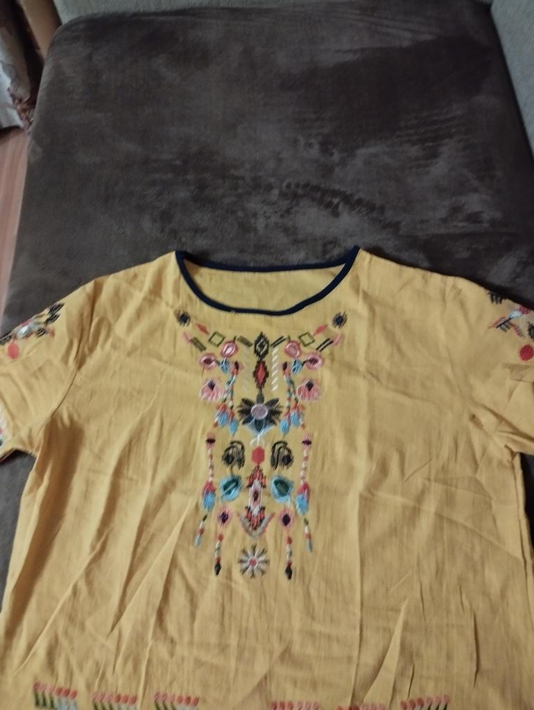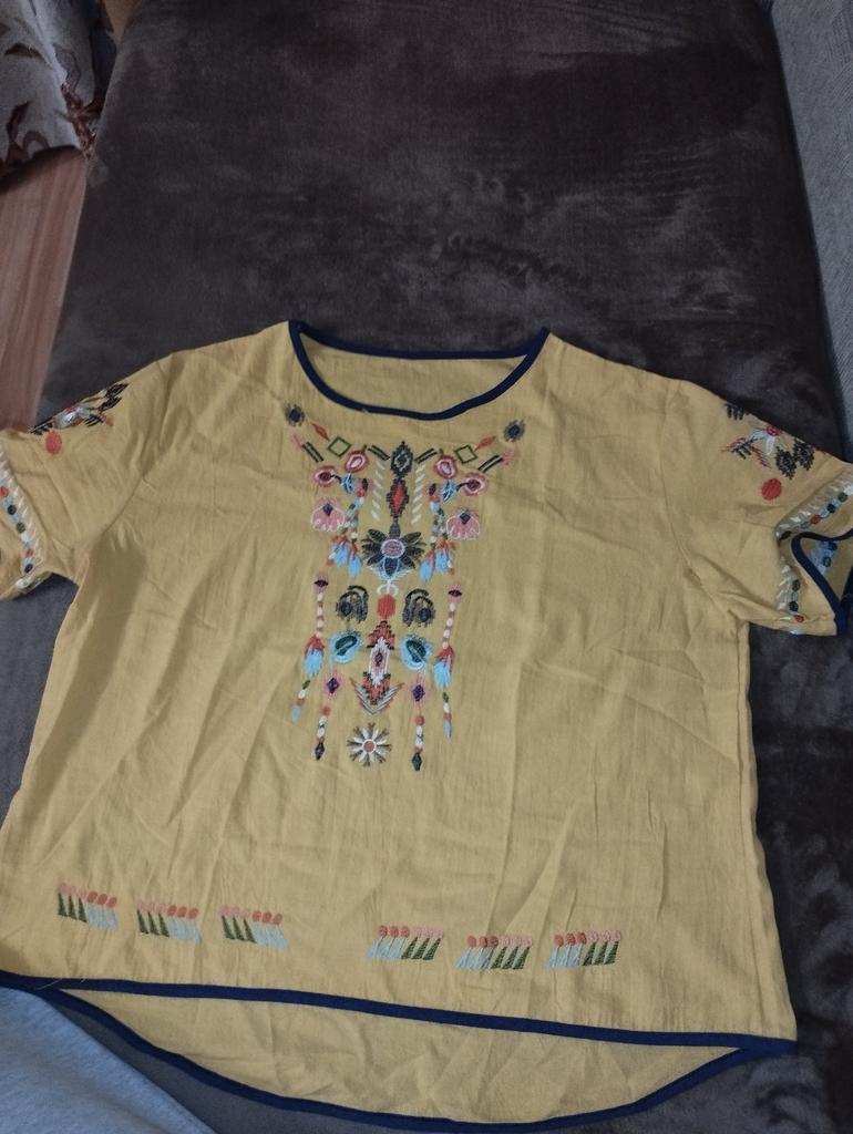 Die Bluse ist sehr hell, schön, die Stickerei ist sauber gemacht, sie sieht cool und stylisch aus. Nähen ist gut, hochwertig. Die Größe stimmt. Ich empfehle zum Kauf. Vielen Dank!