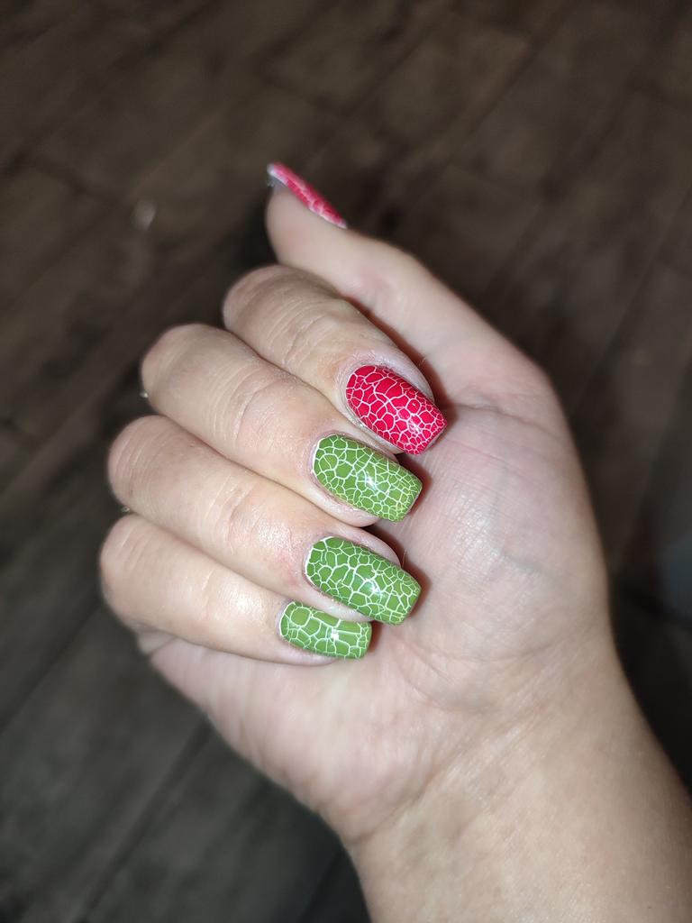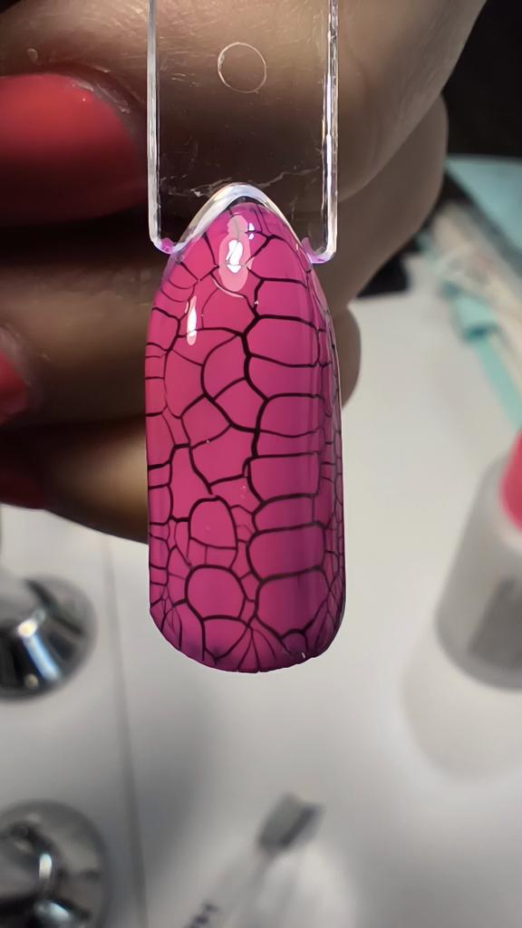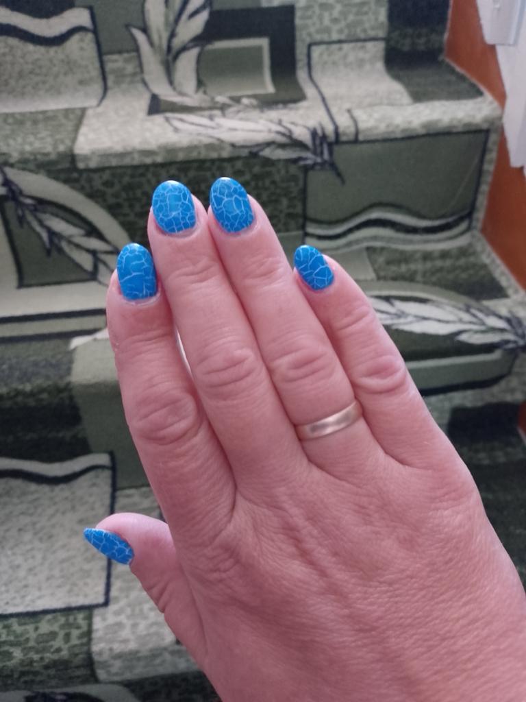 Wundervoller Effekt. Anwendung - Base (in der Lampe aushärten), Gel-Lack (in der Lampe aushärten), Craquelé (ohne Lampe trocknen lassen), Topcoat (in der Lampe aushärten).