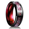 Mode 8mm Männer Rote Nut Abgeschrägte Kante Edelstahl Keltischen Drachen Ring Zirkon Inlay Rot Carbon Fiber Ring Männer hochzeit Band