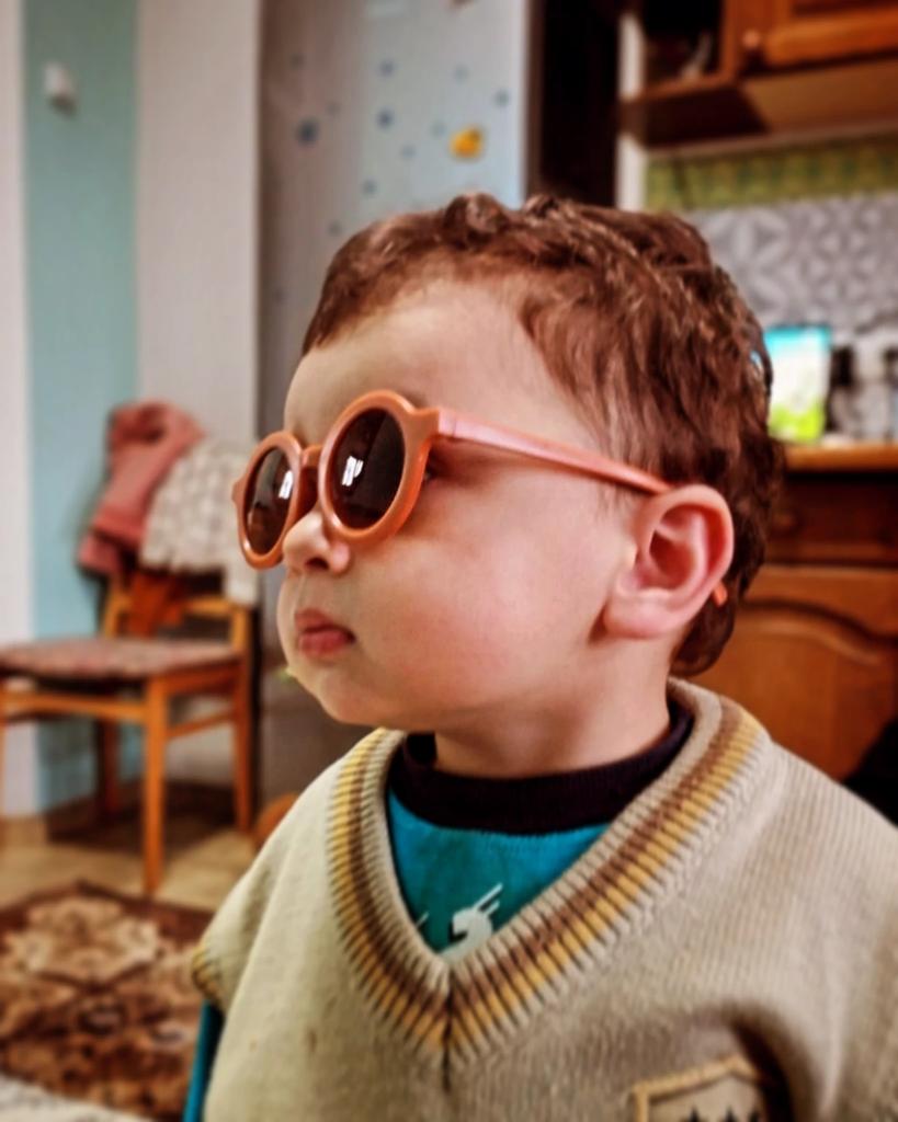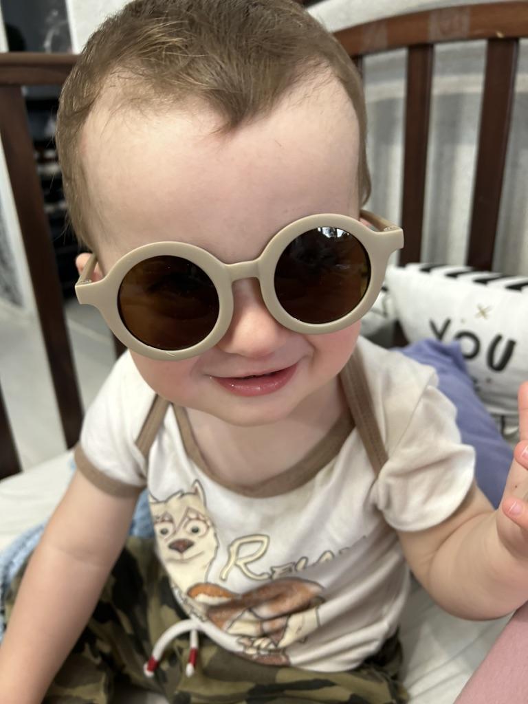 Sehr coole Kinderaugen. Der Kleine ist es noch nicht gewohnt, das zu tragen, aber im Sommer wird er es vielleicht brauchen. Wir sind ein Jahr und neun Monate alt😊Danke