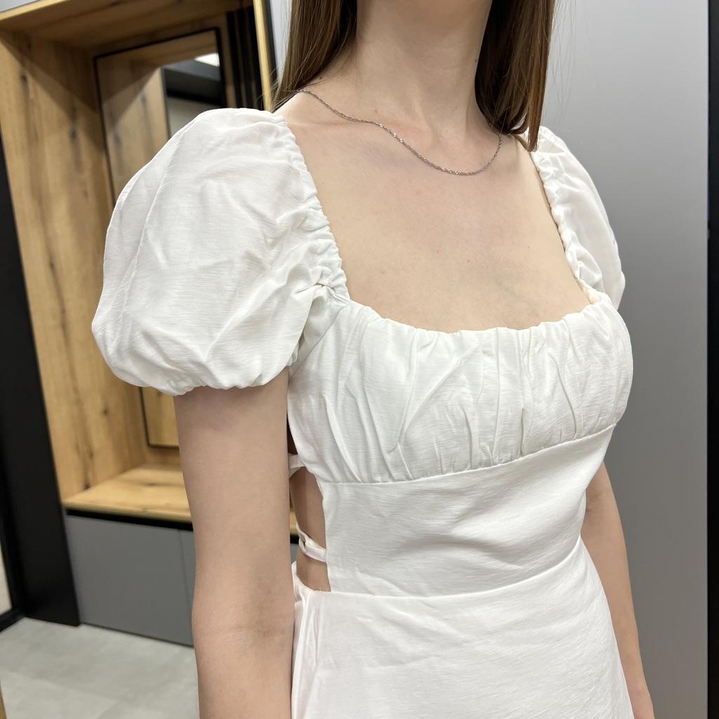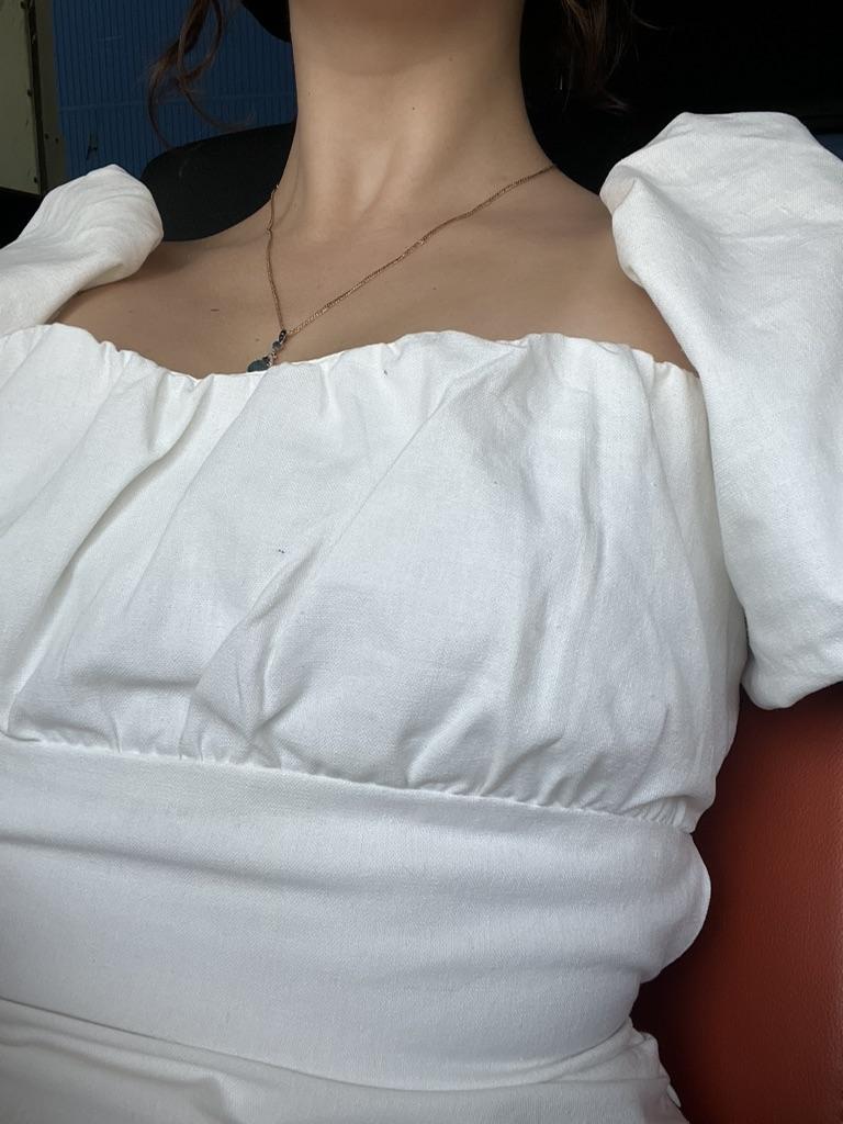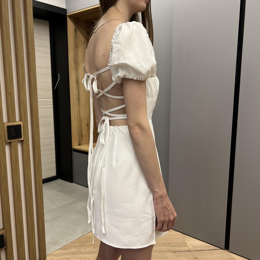 Sommer Damen Weißes Baumwollkleid Rückenfrei Puff Kurzarm Damen Sommerkleid
