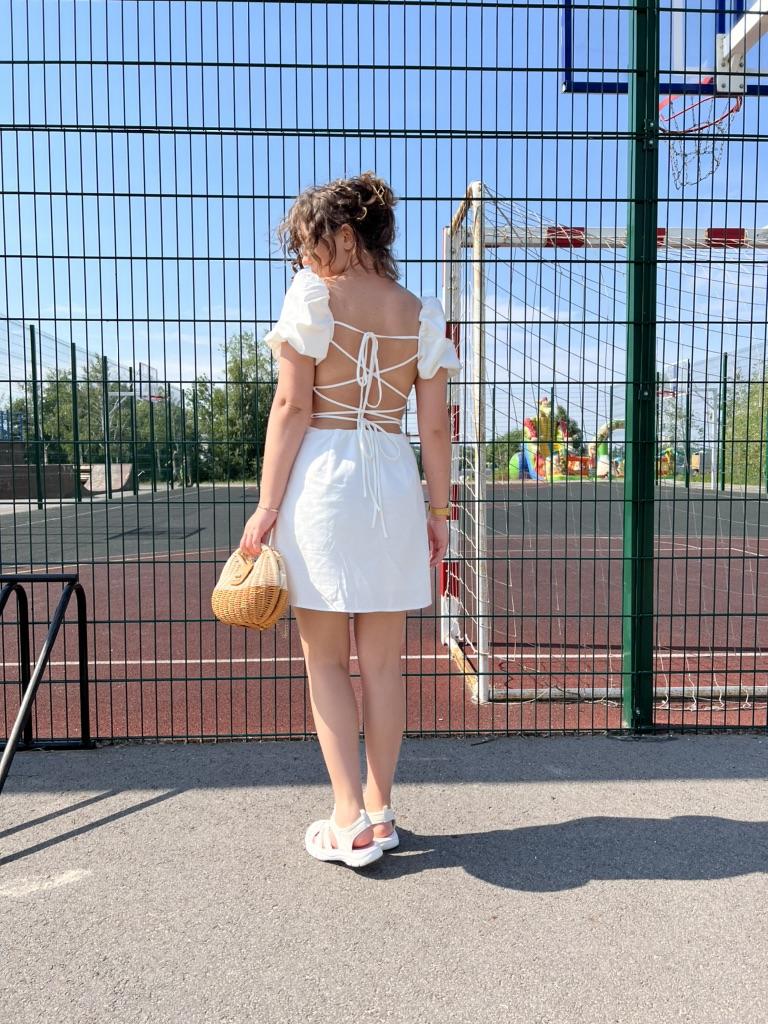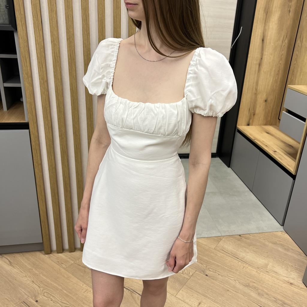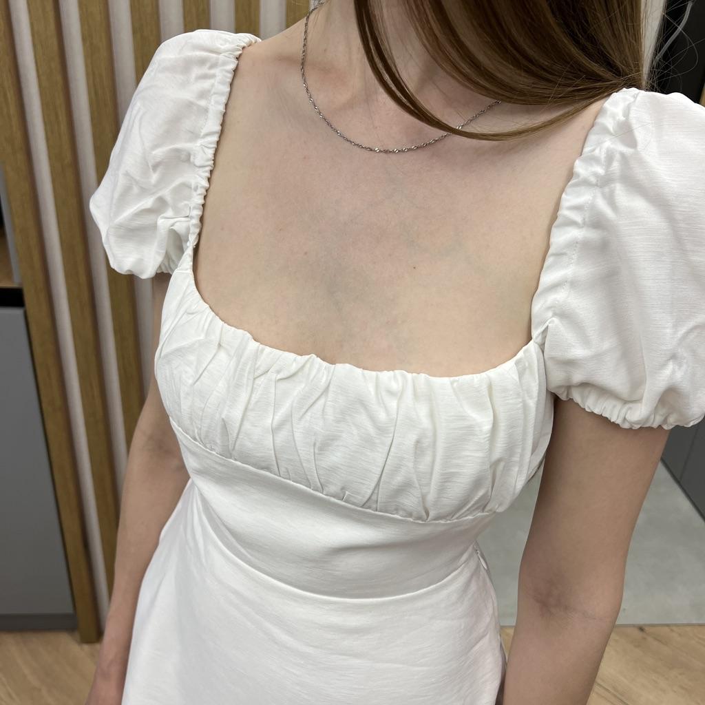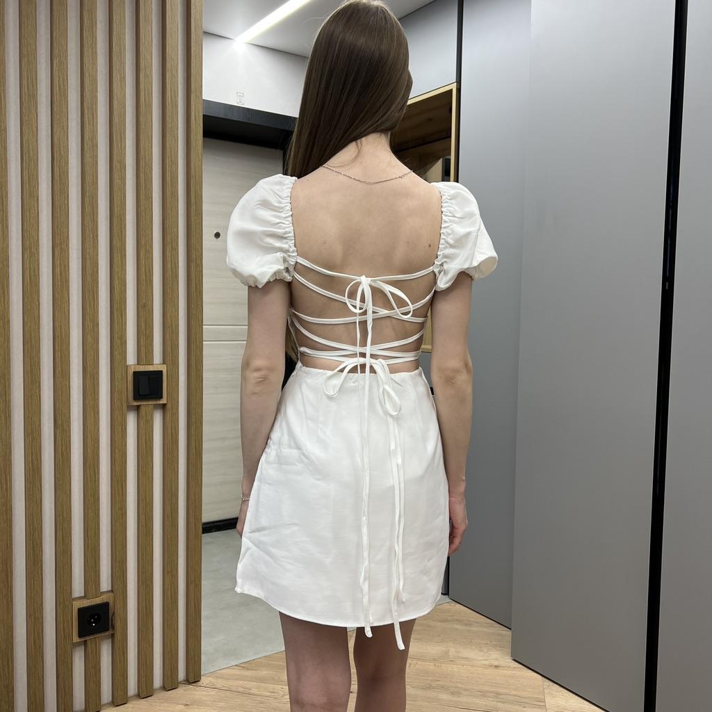 Sommer Damen Weißes Baumwollkleid Rückenfrei Puff Kurzarm Damen Sommerkleid