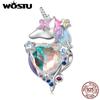 WOSTU Fantasy Series 925 Sterling Silber Einhorn-Charm, mystischer Herz-Anhänger, Planet, Regenbogen-Perlen, passend für Armbänder, Halsketten, DIY-Geschenk
