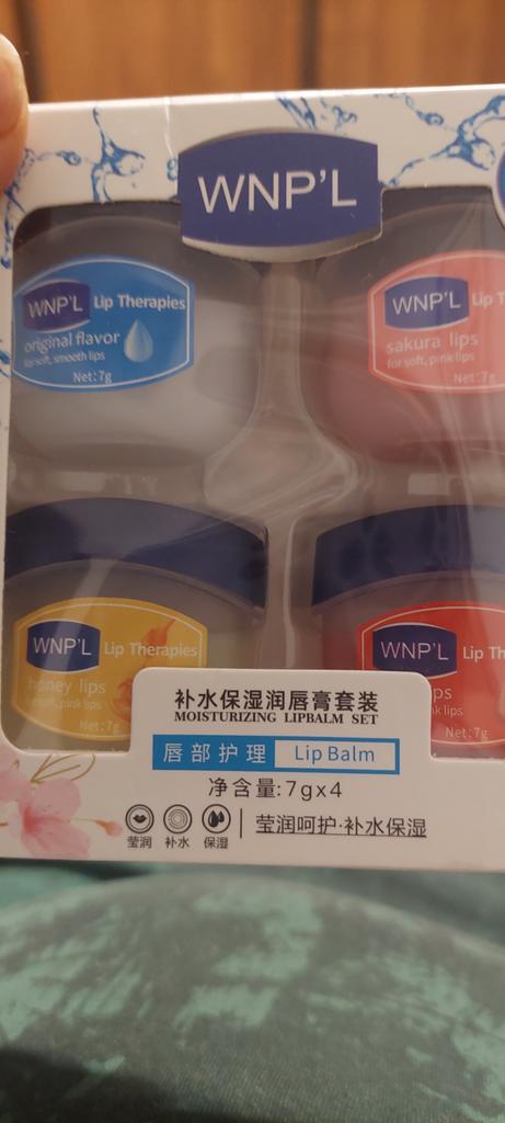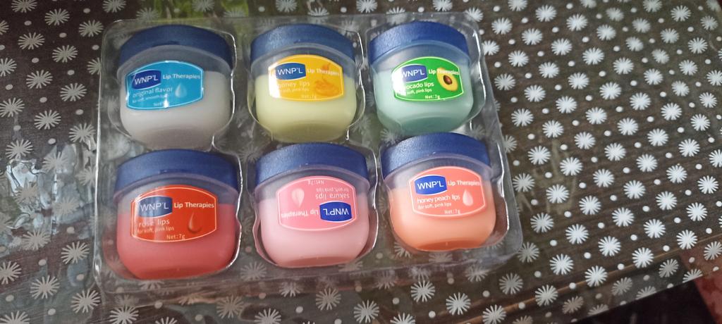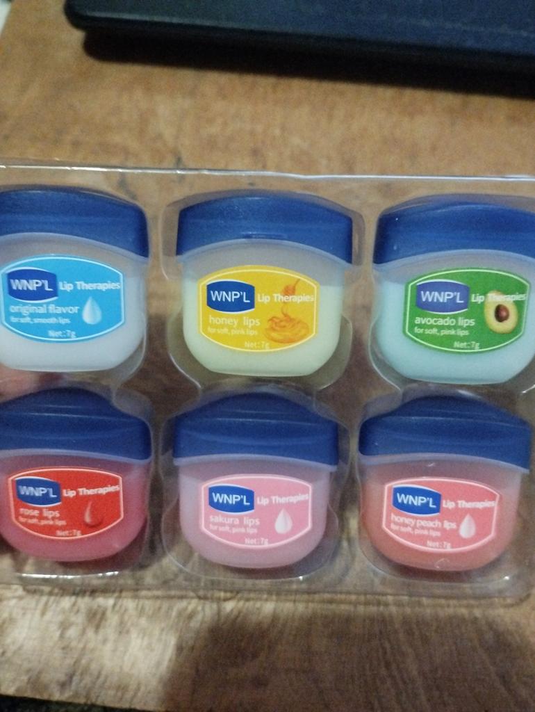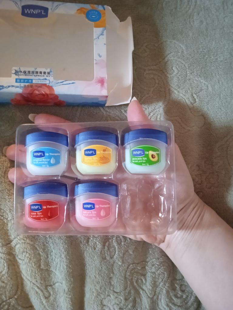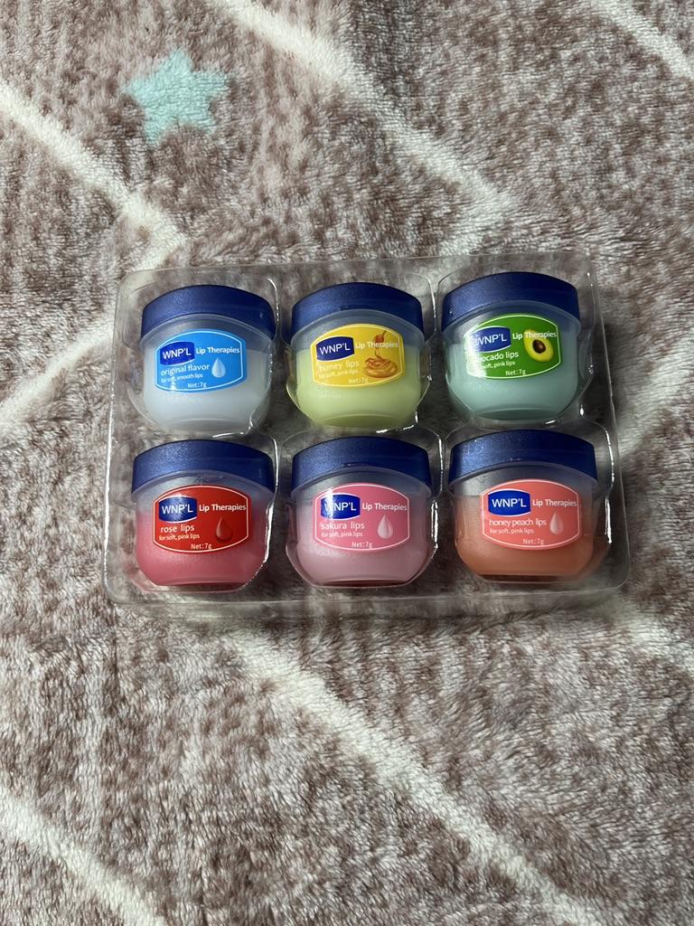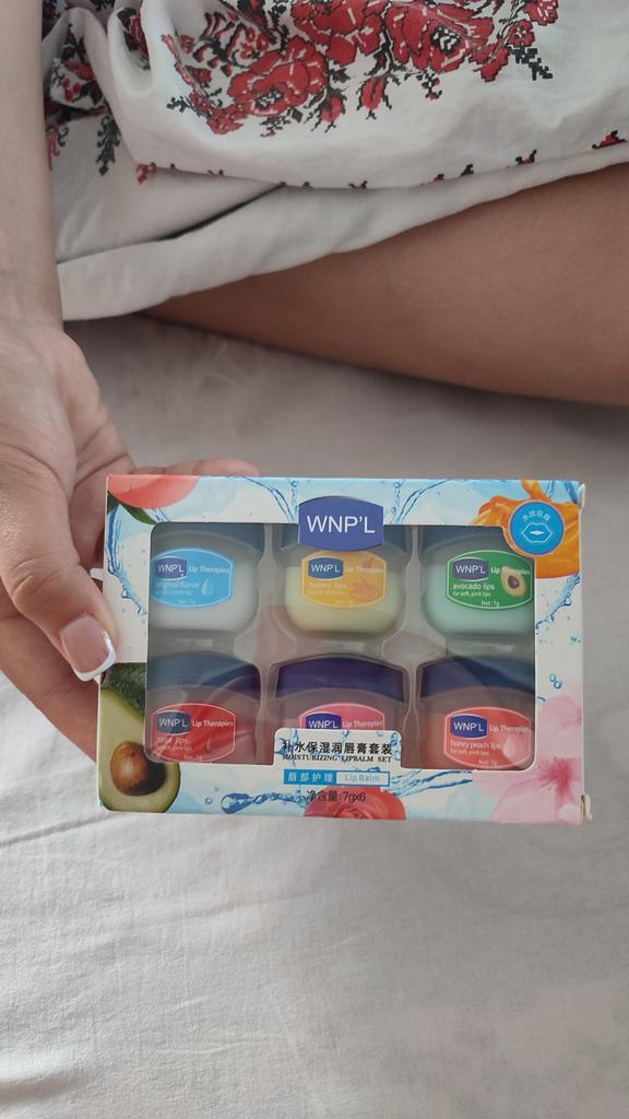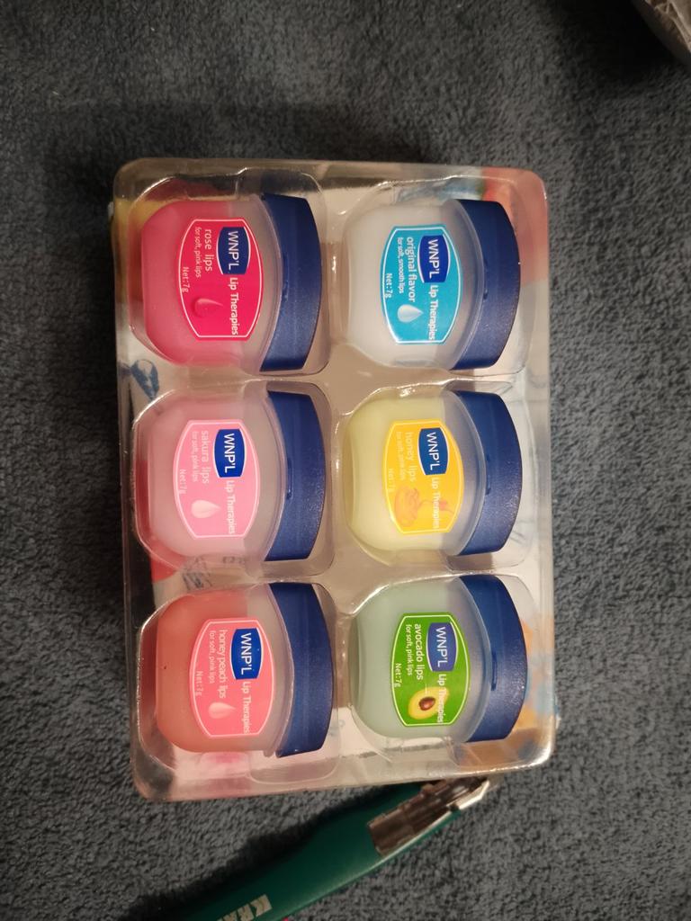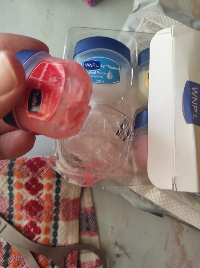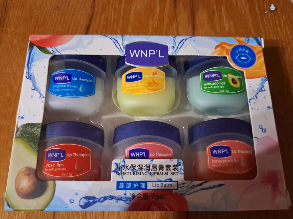 Das ist ein super Lippenbalsam, 6 Gerüche und Geschmäcker, hahah)). Die Gläser sind klein. Der Balsam ähnelt Glycerin oder Wachs. Es gibt keine Allergie, ich denke, dass es auch bei Teenagern möglich ist. Gläser aus starkem Kunststoff. Nur als Geschenk. Ich empfehle