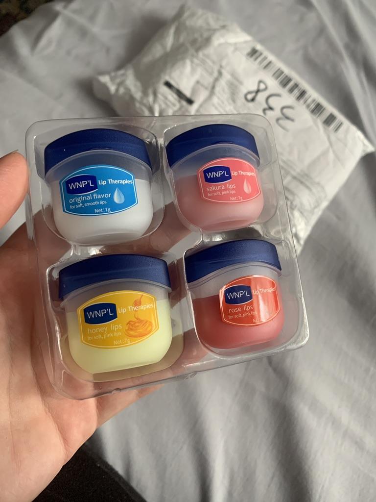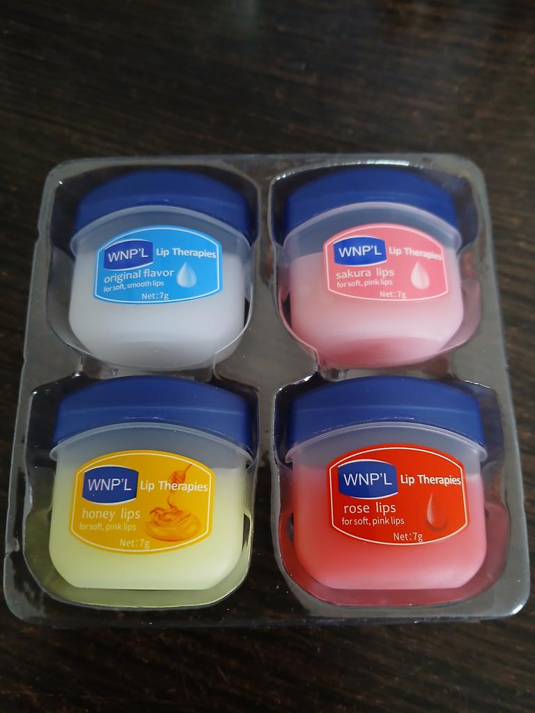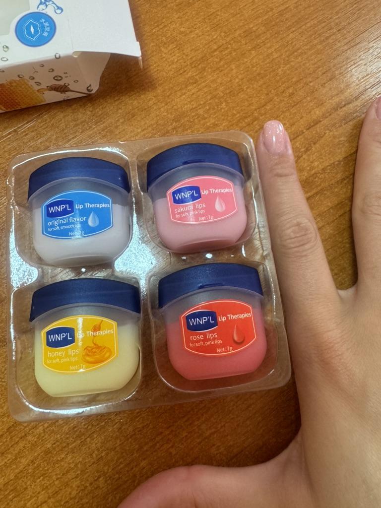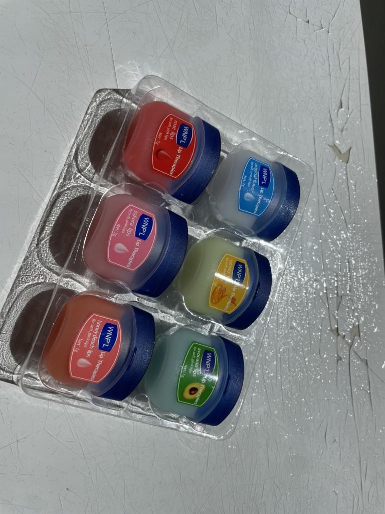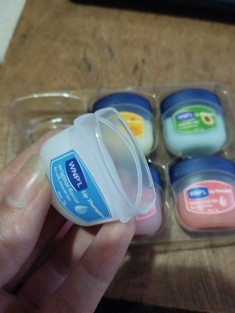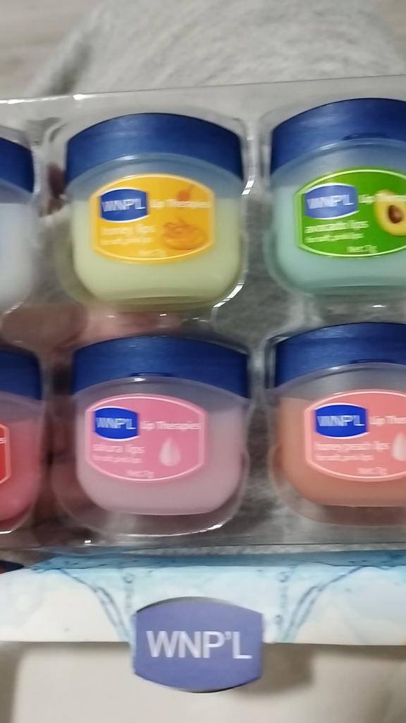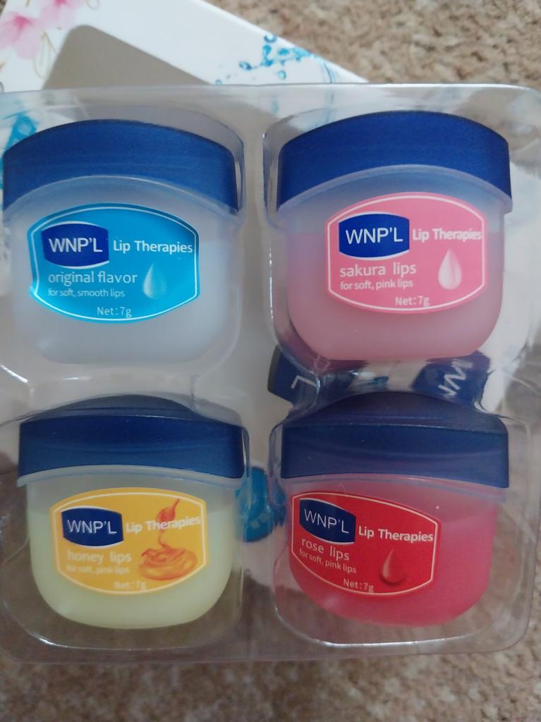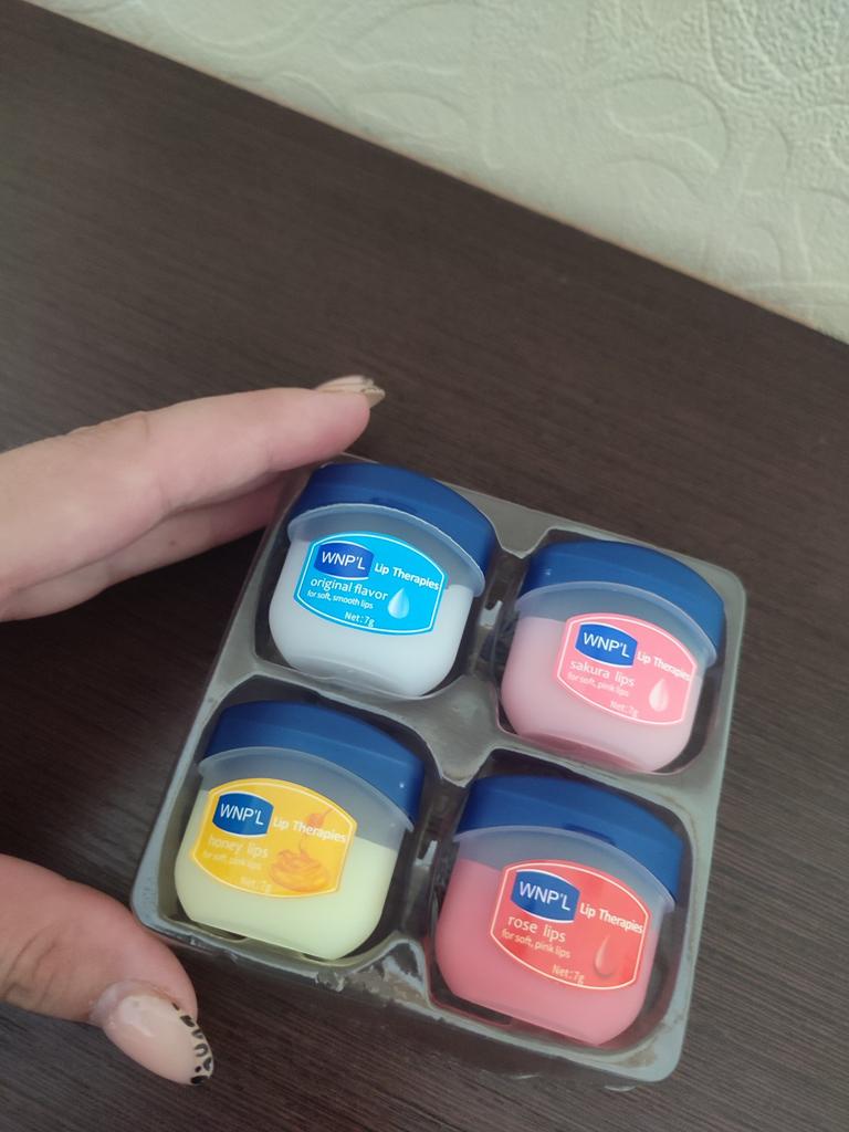 Das ist ein super Lippenbalsam, 6 Gerüche und Geschmäcker, hahah)). Die Gläser sind klein. Der Balsam ähnelt Glycerin oder Wachs. Es gibt keine Allergie, ich denke, dass es auch bei Teenagern möglich ist. Gläser aus starkem Kunststoff. Nur als Geschenk. Ich empfehle