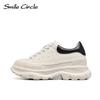 Damen-Sneaker aus klobigem Leder, erhöhende Schnür-Freizeitschuhe, runde Zehen, luxuriöse Sportschuhe