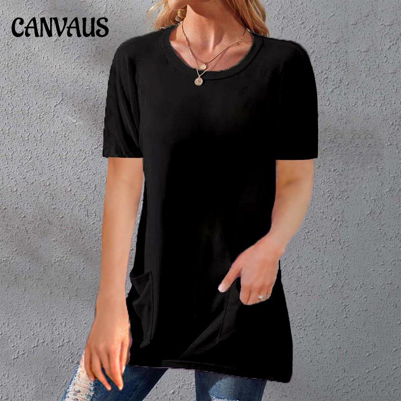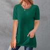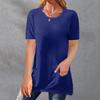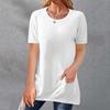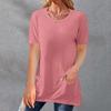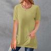 Sommer-Damen-T-Shirt, einfarbig, kurzärmelig, lockeres T-Shirt mit Rundhalsausschnitt und Tasche